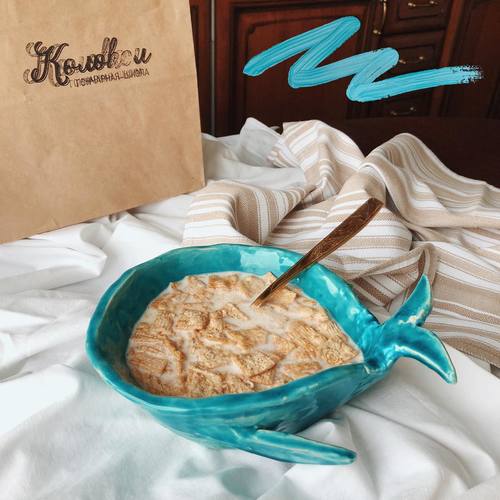 @maleeevaНу как можно сходить на мастер-класс в школу гончарного искусства и не показать, что ты слепил???♀️ Теперь завтракаю любимыми хлопьями из миски-кита? И хоть он такой кривенький, местами непропорциональный, но, по-моему, все равно очень милый☺️